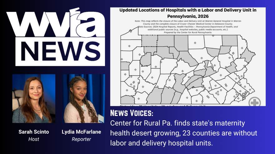 This week, WVIA's Sarah Scinto and healthcare reporter Lydia McFarlane talk about a recent study from the Center for Rural Pennsylvania which found 23 of the state's 67 counties do not have a hospital with a labor and delivery unit.