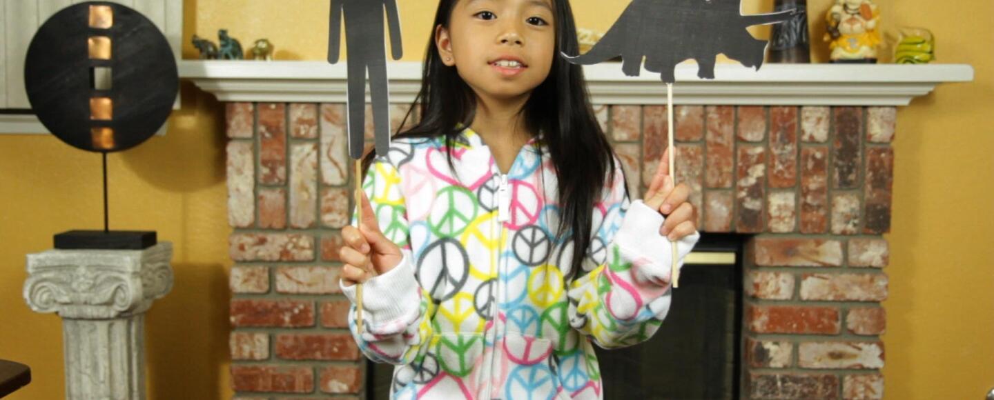 Make your own shadow theater with just a few household items! Mya shows your how to make some neat shadow puppets, and tells the story of the dinosaurs in her own low-lit play. If you'd rather use your hands instead of materials, check out this link from PBS KIDS' Dinosaur Train: http://www.pbs.org/parents/dinosaurtrain/activities/dinosaur-hand-shadows/