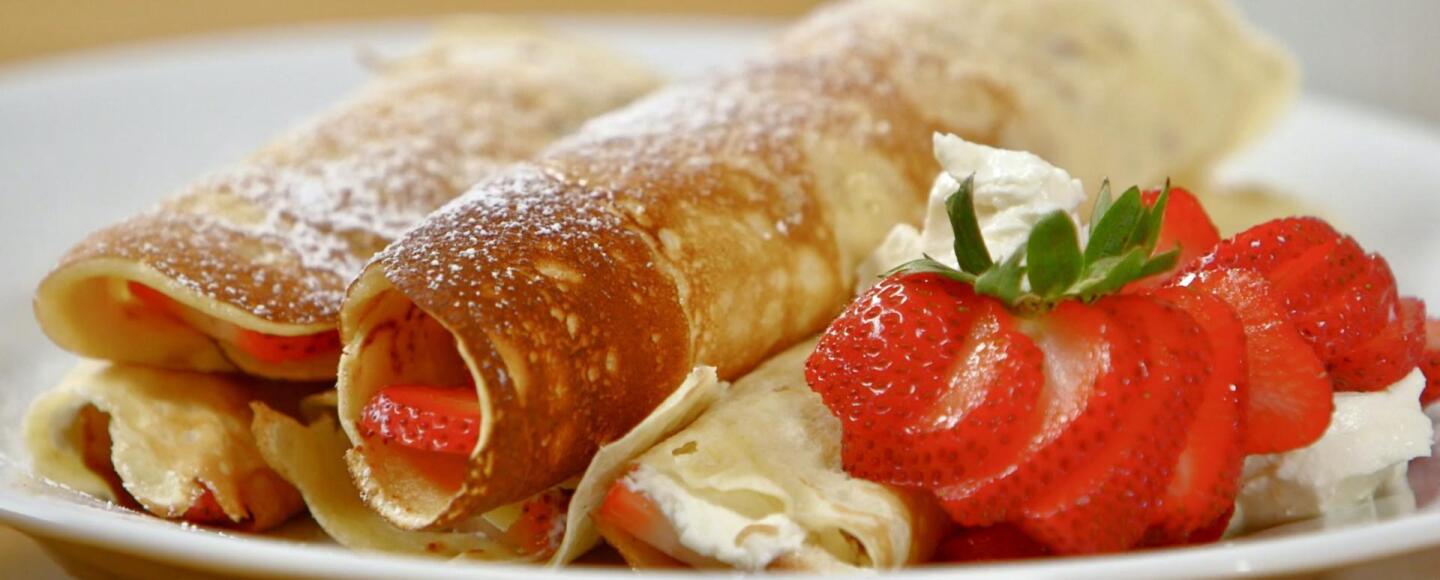 George prepares perfect scrambled eggs, French toast, and mini egg custard pies.