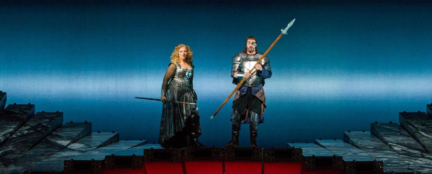 Christine Goerke sings Brünnhilde’s Act II battle cry to Wotan (Greer Grimsley.)