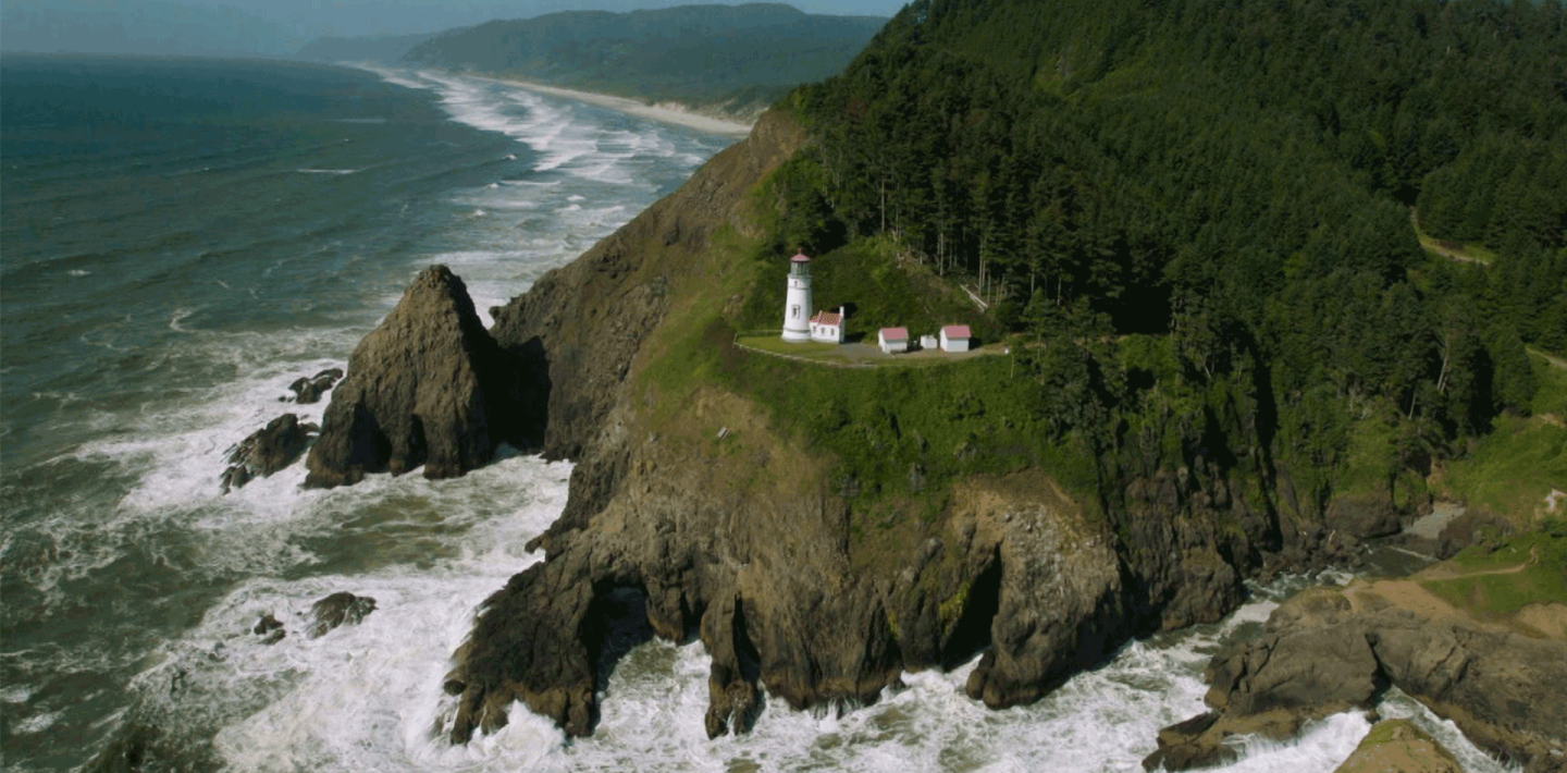 Discover Oregon's stunning landscapes and spectacular coastline with an aerial tour of the state’s breathtaking cliffs, estuaries, ports and small towns, including Tillamook Bay, Cape Kiwanda, Coos Bay and more. The striking footage also captures Oregonians in action along the coast, from windsurfing in the Columbia River to riding all-terrain vehicles through the sand dunes.